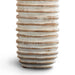 The Carmel Table Lamp's wood body is white-washed and distressed like driftwood that has been aged by the sun and sea. Carved ridges run along the entire body of the lamp, which is topped with a large drum shade and natural brass ball finial. Whether in a relaxed coastal retreat or a neutral bedroom getaway, the Carmel Lamp will provide both sculptural interest and beautiful, warm lighting to your space.