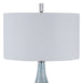 Showcasing A Refined Coastal Style, This Table Lamp Has A Ceramic Base Finished In An Aqua And Teal Crackle Glaze With Touches Of Rust Brown. Polished Nickel And Crystal Accents Highlight The Design. The Lamp Is Paired With A Round Hardback Drum Shade In A White Linen Fabric.