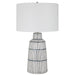 Inspired By The Classic Nautical Stripe Knit, This Ceramic Table Lamp Sports A Satin White Glaze With Rich Navy Blue Stripes And Polished Nickel Plated Accents. The Hardback Drum Shade Is Covered In A Crisp White Linen Fabric.
