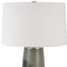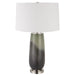 This Elegant Table Lamp Features A Beautiful Speckled Green And Gray-blue Ombre Glass Base With Crystal Accents And Brushed Nickel Finished Iron Details. The Hardback Shade Has A Slight Taper And Is Covered In A White Cotton Fabric.