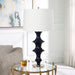 A Contemporary Tribute To Classic Chinoiserie, This Table Lamp's Fluted Base Is Formed From Sculpted Ceramic In A Rich Cobalt Gloss Glaze, Accented By Antique Brass Plated Hardware. The Slightly Tapered Drum Shade Is Covered In A Classic White Linen Fabric.