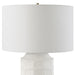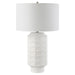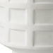 This Contemporary Ceramic Table Lamp Features A Repeating Window Pane Pattern Of Embossed Tiles Finished In A Chalk White Glaze Accented With Antique Brass Plated Details. The Round Hardback Drum Shade Is A Casual White Linen Fabric.