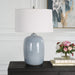 This Ceramic Table Lamp Features A Peaceful Sky Blue Glaze With Cobalt Mottled Details Paired With Plated Brushed Nickel Accents. The Round Hardback Shade Is Covered In A Crisp White Linen Fabric. Due To The Nature Of Fired Glazes On Ceramic Lamps, Finishes Will Vary Slightly.