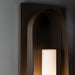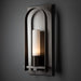 A classically arched shape and details that reference craftsman tenons, at over 27" tall, the Triomphe Large Outdoor Sconce designed by HF's David Martin features a substantial sleek clear seeded or opal cylinder glass shade with a graceful, handmade arch on an aluminum backplate, and any of our robust AAMA-rated Coastal Outdoor Finishes.