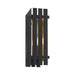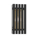 The Greenwich is defined by its bold geometric design and black finish with satin brass accents. The solid brass outdoor wall lantern features a clear glass cylinder under the striking cut-out design. Light shines from the top and bottom, as well as from the open areas of the design in the middle. An elegant sculptural look for your front entryway or outdoor living spaces.
