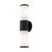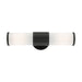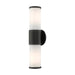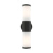 Add a dash of character and radiance to the exterior of your home with this wall lantern. This two-light medium fixture from the Landsdale Collection features two satin opal white glass cylinder closed top shades on either side, set off with a textured black finish. The clean lines of the back plate complement the cylindrical glass shades adorned with detailed trim at the end of each glass creating a minimal, sleek look that works well in most outdoor or indoor settings. This fixture adds charm and contemporary aesthetics to your home.