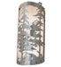This stunning wall sconce features mesmerizing Tall Pine Trees and woodland metal silhouettes. Beautiful ambient light is projected in a Silver Mica curvaceous shade complemented with a Nickel finish. Ideal as a charming ADA Compliant wall sconce in a corridor or other space in a timber frame home, as well as public spaces such as lodges, inns, and hotels. Inspired by the pine trees in the Adirondack Mountains in Upstate New York, the Sawtooth National Forest in Idaho and Utah, to the Sierra National Forest in California and Nevada. The Tall Pines Wall Sconce is included in our American-made, American-designed, handcrafted Nature Inspired Lighting Collection and manufactured in Yorkville, New York. UL and cUL listed for dry and damp locations.