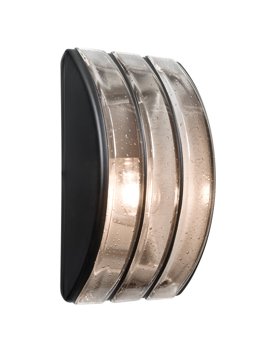 The Prada outdoor sconce is composed of a black powder coated bracket and clear/black European blown glass diffuser, with an interesting bubble pat...