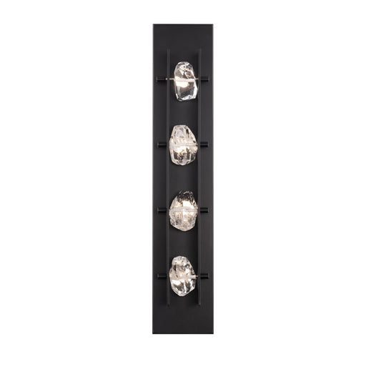 Uniting bold geometric angles, clear crystal in an interlocking pattern delivers textured backlit illumination. Its sleek black base casts downligh...