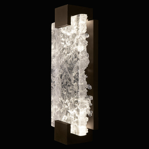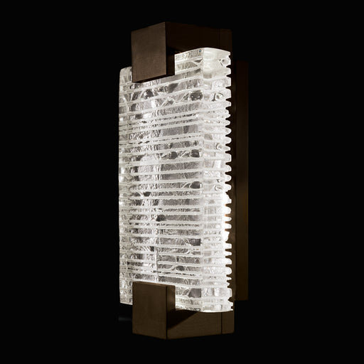 Sconce features a three-dimensional contrast of deep textured and polished cast glass. This stunning landscape of the glass, illuminated by waterpr...