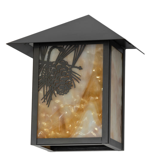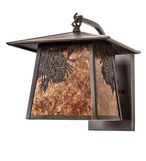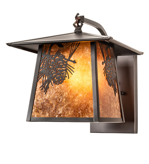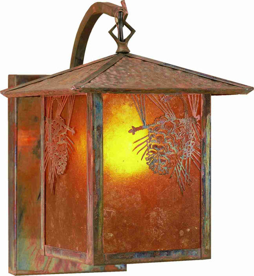 Pine Cone laden branches accent this handsome American Craftsman lantern style hanging wall sconce. The fixture, handcrafted in the USA by Meyda ar...