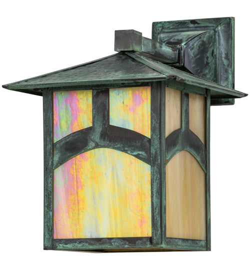 An Arts and Crafts Hill Top arched bar accents this handsome American Craftsman lantern style solid mount wall sconce. The fixture, handcrafted in ...