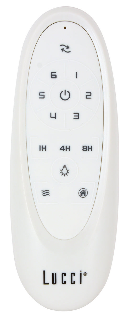 Lucci Air Aria ceiling fan remote control comes with a wall mount. Set includes: One (1) remote control. Materials: Plastic. Finish: White. Voltage...