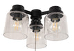 3 Light Universal Fan Light Kit in Flat Black w Clear Glass
