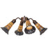 Inspired by the famous Tiffany design from the early 1900s. This fan light fixture features 4 stunning shades created of Honey Wispy and Kelly Green art glass using the famous Meyda Tiffany copperfoil construction technique. An elegant cast metal hub embraces the Lily shades with a floral-styled fitter finished by hand in Mahogany Bronze. The Tiffany Pond Lily 4 Light Fan Light is included in our American-designed, handcrafted Stained Glass Lighting Collection. UL and cUL listed for dry and damp locations. Each shade is a unique work of art with color variations based on natural ingredients inherent in the glass. Please contact us if color matching is critical when ordering multiple items. Fan not included.