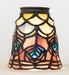 As distinctive as a beautiful Peacock's feathers, no two shades will ever be the same as their individuality can be as remarkably unique as their personality. This artistic creation utilizes swirling opalescent art glass background combinations including Beige Amber, Yellow Pinks, Red Purples, Golden Blues and Greens, Ivories, Bluish Whites, Turquoise Blues, Periwinkle, Olive and Spring Greens, Pale Yellow, Amethyst, Emerald and Topaz. The eye of the plumage design reveals Purples, Pastel Blues, Teals, Cobalt and Ivories. Please note that these fan light shades are sold individually, specifications and pricing are for a single shade only.
