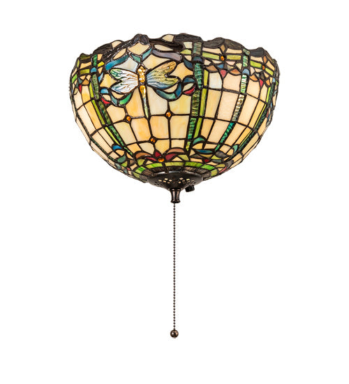Inspired by Tiffany Studio's beloved Dragonfly stained glass design, this Fan Light fixture features Dragonflies with glowing jeweled eyes and deli...