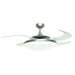 The Australian Original FANAWAY Evo2 Endure retractable PC blades ceiling fan in brushed chrome, dimmable LED light kit and remote control included. EVO 2 Endure from FANAWAY® is an advanced ceiling fan with unique aesthetics and energy efficient design. Switched off, the traditionally intrusive fan blades automatically retract and conceal, and visually the unit transforms into a slim, modern light pendant. Turning the fan on creates a centrifugal force which deploys the blades to circulate air within a room. It creates open space in the room environment, accumulates less dust, and is unobtrusive and versatile to visually integrate into most building interiors. Fanaway US patents and Design Registrations current. US Patent 8317470, US Patent 8807938, US Patent 8790085, US Patent 9255584, US Patent 8851841. Set includes: One (1) ceiling fan with remote control. Material: PC, Steel. Finish: Brushed Chrome and Transparent. Additional or replacement remotes sold separately: 30313302. 6 inches motor. 3 speed remote. Airflow(CFM): 4169.88, 2709.99, 1187.69. Motor Wattage: 60W. Socket: E263. 2700 kelvin dimmable A19 LED bulbs included. Summer/Winter mode: No. Poles: 16Blade pitch: Variable. Wet/Damp: Indoor. Voltage: 110V. Fan watts when used at high speed: 60W. Down rod material: Steel. Power Consumption Average(wattage): 135W. ETL / CETL. Light kit: Included. Limited lifetime warranty. Blade dimensions: 17.52 in. L x 4.06 in.W. Downrod length: 5 inches. Ceiling Fandimensions: 15.74 inches high x 48 inches wide x 15.74 inches deep. This product will ship to you in one (1) box. Accessories pictured are NOT included. Assembly required.