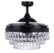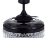 The stunning elegance of upscale glam décor offers functionality and lighting in the Fanaway Veil four-blade LED ceiling fan. Create a formal, palatial aesthetic in a modern or transitional space with a ceiling fan designed to stand out. This fan offers a three-tiered shade joining rows of delectable crystal elements forming a graduated silhouette. Shapely blades made of PC are retractable, delivering a convenient way to transform its look from a straight light to a fan circulating welcomed air. This dimmable four-blade, three-speed fan and light features a ceiling pitch of 15 degrees with a reversible motor consuming 60 watts. Easy operation by remote control makes this distinctive ceiling fan easy to use in a dining or living space, or in a custom upscale bedroom. Set includes: One (1) ceiling fan with remote control. Material: Metal (fan housing) and PC - Polycarbonate (blades). Finish: Antique Black. Blade color: Smoke. Winter/Summer mode manual switch. Motor size (inch): D153 x 15. Airflow(CFM): 4169. Number of speed: 3. Power Consumption Average(wattage): 60. Motor Wattage: 60W. Include 3 x 4.5W E12 LED bulbs included, each bulb 300LM, 2700K. Socket: E12, Dimmable. RPM H/M/L (motor speed): 223/163/122. Fan Watts when used at high speed: 60W. Voltage: 110V. Ceiling Fan dimensions: 19.6 inches high x 48 inches wide x 48 inches deep. Blade dimensions: 17.7 inches length x 4.1 inches width. This product will ship to you in one (1) box. Accessories pictured are NOT included. Assembly required.