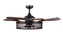 The Australian Original FANAWAY Meridian Oil Rubbed Bronze with Amber Blades is an advanced ceiling fan with unique aesthetics and energy-efficient design. Switched off, the traditionally intrusive fan blades automatically retract and conceal, transforming the unit into a modern industrial pendant. It creates open space in the room environment, accumulates less dust, and is unobtrusive and versatile to visually integrate into all rooms of your home. The fan comes with 3 dimmable LED vintage bulbs, 3-speed remote control, winter/summer mode and wall mount for you to personalize your experience. The star of this Fanaway design is the light kit which has a hand-crafted industrial mesh cage. The 3 dimmable vintages LED bulbs completes the rustic modern feel and is sure to add that designer look to any room in your home. Additional downrods lengths sold separately: 12``, 24`` and 36`` - 51107012, 51107024, 51107036. US Patent 8317470, US Patent 8807938, US Patent 8790085, US Patent 9255584, US Patent 8851841. Set includes: One (1) ceiling fan with remote control. Material: Metal (fan housing) and PC - Polycarbonate (blades) . Finish: Oil Rubbed Bronze. Ceiling fan dimensions: 16.54 inches high x 48 inches wide x 48 inches deep. Blade dimensions: 17.7 inches length x 4.1 inches width, Blade color: Amber. Winter/Summer mode manual switch. Motor size (inch): D153 x 15. Airflow(CFM): 4172.69. Number of speed: 3. Power Consumption Average(wattage): 60. Motor Wattage: 60W. Include 3 x 4.5W E26 Based ST19 LED bulbs included, each bulb 360LM, 2700K. Socket: E26, Dimmable. RPM H/M/L (motor speed): 223/163/122. Fan Watts when used at high speed: 60W. Voltage: 110V. Ceiling Fandimensions: 16.54 inches high x 48 inches wide x 48 inches deep. This product will ship to you in one (1) box. Accessories pictured are NOT included. Assembly required.