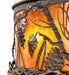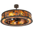 Delicate Pinecones and Pine Branches appear to rustle in the wind as they accent this Fan Integrated Light Fixture. Soft ambient light projects through Amber Mica panels and matching bottom diffuser while the fan spins quietly in the center. The shade is enhanced with intertwining metal branches and other accents in an Oil Rubbed Bronze finish. Made to Order in our 180,000 square foot manufacturing facility in Yorkville, New York. The Whispering Pines Chandel-Air creates a windchill that circulates to keep your space cool and comfortable during the summer. The fan is reversed to pull the room air up towards the ceiling and force the warm air back down in winter. UL and cUL listed for dry and damp locations.