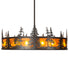 A stand of Tall Pines accents this fan-integrated custom lighting fixture with woodland metal silhouettes and hardware in an Oil Rubbed Bronze finish. An Amber Mica diffuser illuminates while gentle breezes are created by a fan spinning quietly in the center. Sixteen inner lights are used for a decorative effect and to bring out the beauty of the Mica. The Tall Pines design is inspired by the Coconino National Forest in Arizona, to the Deschutes National Forest in Oregon, to the Ancient Bristlecone Pine Forest of California. This Chandel-Air is ideal for use in an entryway, lobby, ballroom, and other rooms in residential, hospitality, and commercial settings. In summer, the fan pushes down a windchill that circulates to keep the space cool and comfortable. In winter, the fan is reversed to pull the room air towards the ceiling, forcing the warm air back down & circulate to create warmth. The Tall Pines Chandel-Air is included in our American-made, American-designed, handcrafted, award-winning Chandel-Air Collection and manufactured in Yorkville, NY. UL & cUL listed for dry and damp locations.