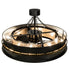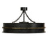 The Golden Forge Chandel-Air is a modern marvel, a dual-function fan integrated light fixture featuring energy-efficient technologies. Antique Black finished metal bands with Hand Hammered accents allow a sliver of light through narrow slots in the side while the additional hardware is finished in Black Satin Wrought Iron. The bottom and inner diffusers are created with rich Silver Mica. Domestically produced in our 180,000 sq ft manufacturing facility in Yorkville, NY. UL and cUL listed. In summer, the fan pushes down a windchill that circulates to keep the space cool and comfortable. In winter, the fan is reversed to pull the room air up towards the ceiling & force the warm air back down and circulate to create warmth.
