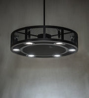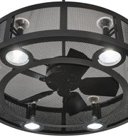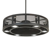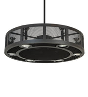Handsome styling meets engineering innovation with this fan-integrated custom lighting design. The custom-crafted Chandel-Air features a Wrought Iron Weave-Tex caged frame. The modern marvel features 6 LED downlights for task lighting and 6 LED uplights for ambient lighting. This energy-saving Chandel-Air creates a windchill to keep the space cool in the summer and is reversed in the winter to push down hot air and maintain warmth. The Paloma Golpe Chandel-Air is included in our American-made, American-designed handcrafted Chandel-Air Collection. Manufactured in Yorkville, NY. UL & cUL listed for dry and damp locations.
