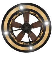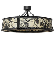 Delicate Pinecones and Pine Branches appear to rustle in the wind on this Custom Fan-Integrated Light Fixture, featuring a Botticino Idalight diffuser with a Wrought Iron finish. Multiple layers of light for different moods and tasks include 8 inner lights that bring out the beauty of the Mica & 4 downlights that deliver functional illumination. A windchill circulates to keep the space cool during the summer, and is reversed to pull the room air up and force warm air down in winter. The Whispering Pines Chandel-Air is included in our American-made, American-designed handcrafted Chandel-Air Collection. Manufactured in Yorkville, NY. UL & cUL listed for dry & damp locations.