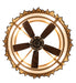 Inspired by light speed frequency and wavelengths, this stunning unique Chandel-Air design offers a fan-tastic decorating idea for your home, hotel, restaurant, or office. Gold Metallic Rods hand-welded together in various sizes and heights surround a rotund frame featuring a Statuario Idalight lens that provides beautiful ambient illumination. The metal fixture is transformed into a decorative and functional casement for a ceiling fan that spins quietly within. This innovative custom fan-integrated lighting fixture is designed as an energy saver. In summer, the fan pushes down a windchill that circulates to keep the space cool and comfortable. In winter, the fan is reversed to pull the room air up towards the ceiling and force the warm air back down into your space. The Frequency Chandel-Air is included in our American-made, American-designed, handcrafted Chandel-Air Collection and manufactured in Yorkville, NY. UL & cUL listed for dry and damp locations.