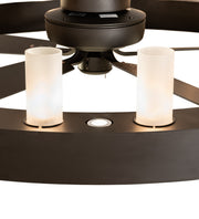 Blending an elegant style with a classic, distinguished look... The massive Loxley Chandel-Air features a lighting fixture that integrates a ceiling fan. It is custom-crafted with 21 Frosted Seeded Glass Cylindre elements. These illuminating elements are perched on a sturdy ring, which is enhanced with an Oil Rubbed Bronze finish. This luxurious Chandel-Air is ideal for illuminating great rooms, entryways, and other residential, hospitality, and commercial spaces. Six downlights provide task lighting, six uplights deliver ambient illumination on the ceiling above, and 21 lamps bring out the beauty of the glass elements. The decorative element lamps, uplights, downlights, and fan benefit from four separate circuits to give you precise dimming control over the three layers of light and the ceiling fan to create the perfect ambiance in the space. In summer, the fan pushes down a windchill that circulates to keep the space cool & comfortable. In winter, the fan is reversed to pull the room air towards the ceiling, force warm air down, and circulate to create warmth. The Loxley 21 Light Chandel-Air is included in our American-made, American-designed, handcrafted Chandel-Air Collection. This fixture is manufactured in Yorkville, New York, and is UL and cUL listed for dry and damp locations.