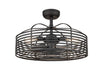 A thoroughly unique take on the industrial style caged ceiling fan, this fixture includes three lights and has a powder-coated black finish. Sized at 23-5/8" x 9-1/2"H, this fan provides the perfect designer touch for both in-town loft living and modern farmhouse chic.