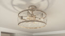 The Dury range evokes harlequin diamonds in a choice of Century Silver Leaf or Palladian Bronze finishes. An airy, convex cage of iron creates a posh and dainty focal point for the candelabra inside, and the reversible 3-speed motor makes any room easy and breezy.
