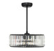 Lovers of glamorous style will adore this Savoy House Janus 6-light Fan D'Lier. The lights sparkle from behind slim, sleek pieces of faceted clear crystal that pop nicely against the Matte Black finish. Janus uses an efficient DC motor, includes six standard size dimmable LED bulbs of 6 watts per bulb and has a handheld remote control for extra convenience. It is 23" in width and 10.3" in height. Comes with a 4" downrod and an 18" downrod. Fan D'Liers are a Savoy House exclusive that combines the best of ceiling fans with the best of chandeliers in one fabulously fashionable fixture. These custom designs are inspired by high-end designer styles and take top trends to a whole new level.