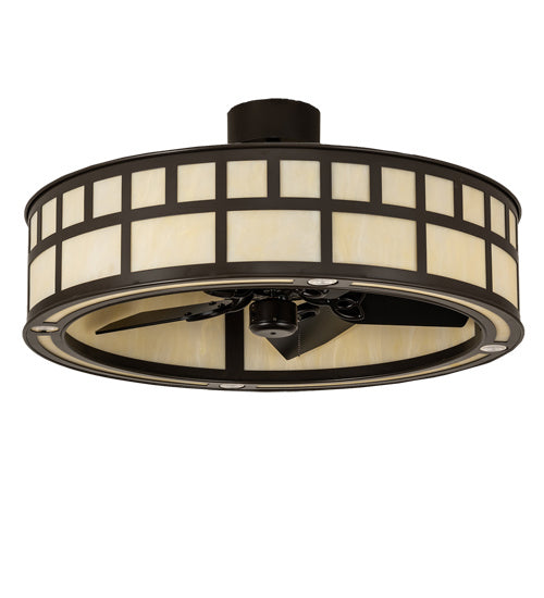 A unique Craftsman styled fan integrated lighting fixture. A stunning Botticino Idalight diffuser is enhanced with a Mahogany Bronze finish. This m...