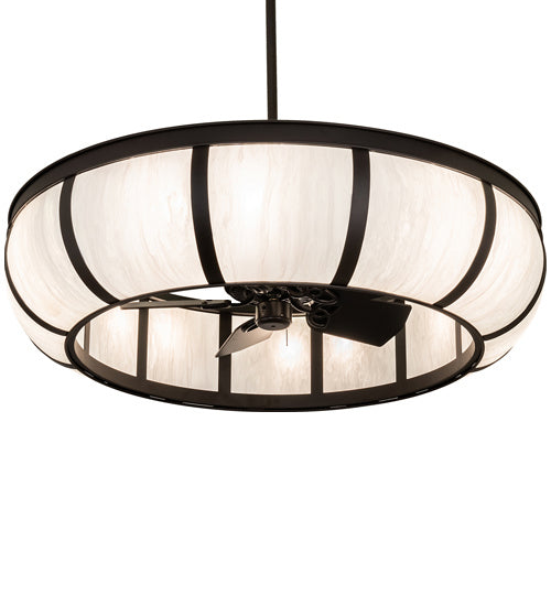 A modern marvel that enhances residential and commercial settings, this custom fan-integrated lighting fixture features a stunning Linen Diffuser t...