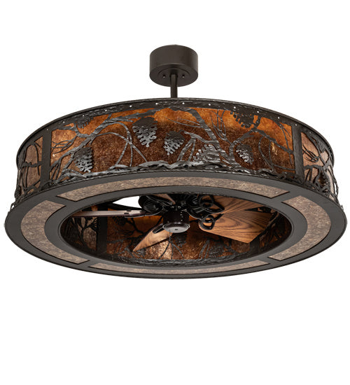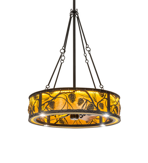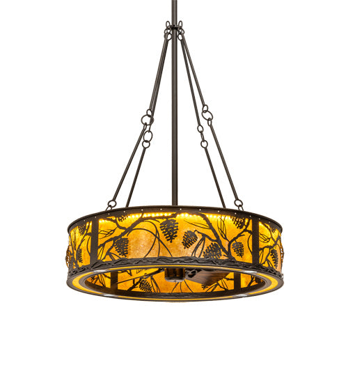 Delicate Pinecone and Pine Branch accents adorn this Fan Integrated Light Fixture. Beautiful light is diffused through Amber Mica panels on the mai...