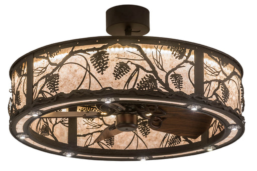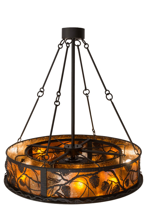 This Chandel-Air features a custom fan-integrated lighting design with handsome Amber Mica side panels and is enhanced with Barkerized Pinecones an...