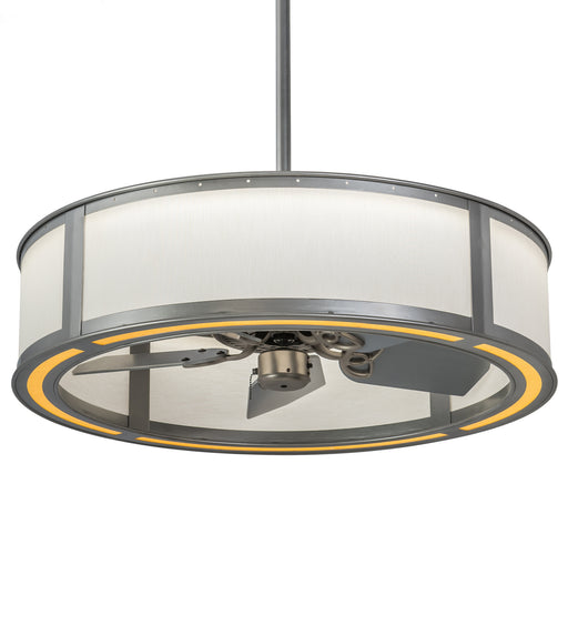 A modern marvel that enhances residential and commercial settings, this custom fan-integrated lighting fixture features stunning Natural Textrene w...