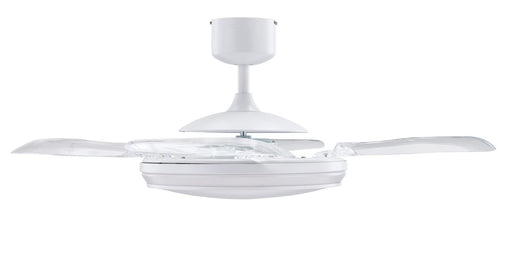 The Australian Original FANAWAY Evo1 retractable blades ceiling fan and dimmable LED light in white with clear acrylic blades and colour shifting t...