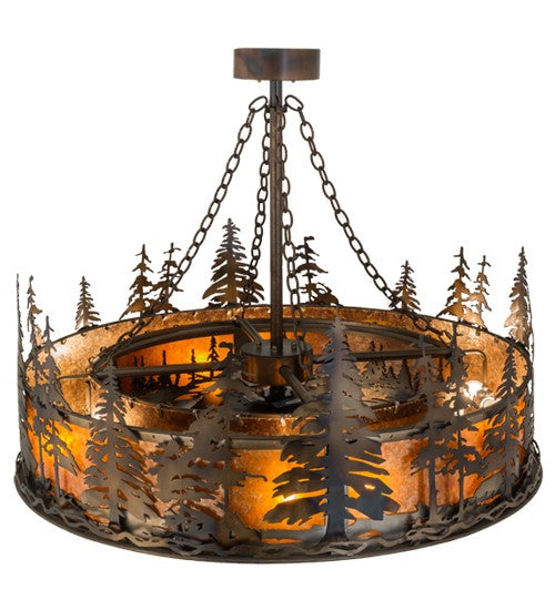 Innovation never looked so good as this custom lighting fixture integrates efficient fan technology. Nature-inspired Tall Pine Tree silhouettes, co...