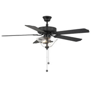 This 52" ceiling fan is an excellent way to stay comfortable and to stay on budget, too. The look is ideal for any home and the integrated clear bubble glass fan light provides bright illumination. Matte black finish. Blades are finished in black on one side and walnut on the other. Features a pull chain for 3-speed reversible control and a dual mounting system, with downrod and hugger, to suit most ceiling heights. Indoor use only.
