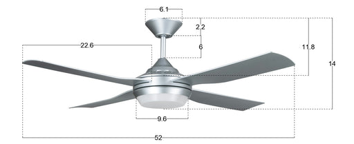 The Lucci Air Moonah 52-inch 4 blade fan and LED light in silver with silver blades. The Lucci Air Moonah comes with high-performance ABS blades, d...
