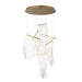 An airy arrangement of abstract forms, the Rinkle pendants feature sheets of transparent acrylic shaped by hand. The light guided acrylic captures the glow of energy efficient LEDs recessed within strips of shining stainless steel, obscuring the source of illumination. Delicately suspended by a series of thin wires, the pendants appear to be floating in an adjustable configuration of weightless light sculpture. Available in Polished Chrome, French Gold, and Brushed Gunmetal, its unique design adds a showstopping element to interior spaces.