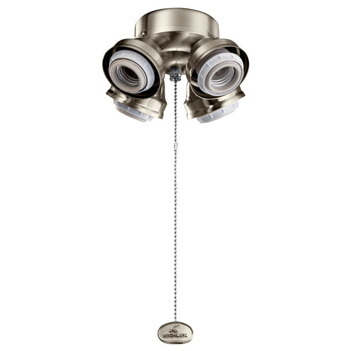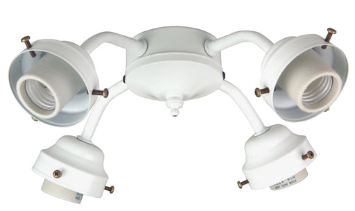 Four Light Fan Light Kit.Requires 2-1/4 Fitter Glass Shades .Candelabra bulb base.Limiter included (190 watts)Details:Product Type: FittersFinish: ...