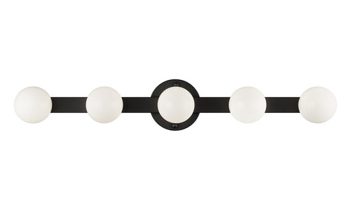 5 LT 17.6"W "PIZZAZ" WALL SCONCE IRON+ALUMINUM-MB-OPAL GLASS G9 LED 5WDetails:Product Type: Five+LightsFinish: Matte BlackShade: Opal GlassMeasurem...
