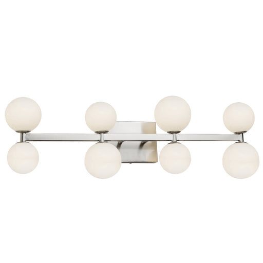 The Hadleigh collection of bathroom vanities features opal multi size glass spheres implemented on a plated brushed nickel frame. The LED light sou...