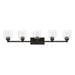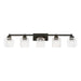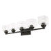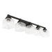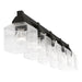 This bath vanity light is sure to provide reliable illumination without sacrificing style. It features five clear seeded glass shades with an open bottom, exposing the bulbs inside. A black finish covers the backplate and accents the light.