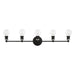 Clean lines and exposed bulb sockets make the Lansdale collection perfect for your mid-mod or transitional bath. The eclectic look is perfect for spaces wanting an urban, minimalistic or industrial touch. With superb craftsmanship and affordable price, this black finish combined with brushed nickel finish accents makes this five-light vanity sconce sure to tastefully indulge your extravagant side.