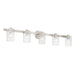 The Munich transitional five light vanity sconce will bring posh sophistication to your decor. The backplate and clear cylinder glass give this brushed nickel finish a sleek, contemporary look.